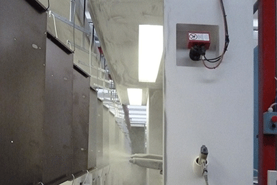 Cabina de vopsire din componenta instalatiei noastre de vopsire este de ultima generatie. De provenienta italiana, construita de cel mai mare producator Italian de sisteme de vopsire in camp electrostatic: Zeus Electrostatic System SRL, aceasta indeplineste ultimele cerinte din domeniul tehnologic.