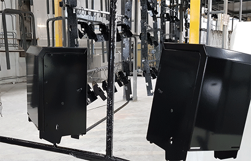 Dupa depunerea vopselei pulbere pe suprafetele pieselor,acestea vor fi purtate de conveiori in interiorul cuptorului de polimerizare. Acest cuptor de tip clopot asigura pentru o perioada de minim 30 minute temperature optima de polimerizare a vopselei (deregula180°C).
